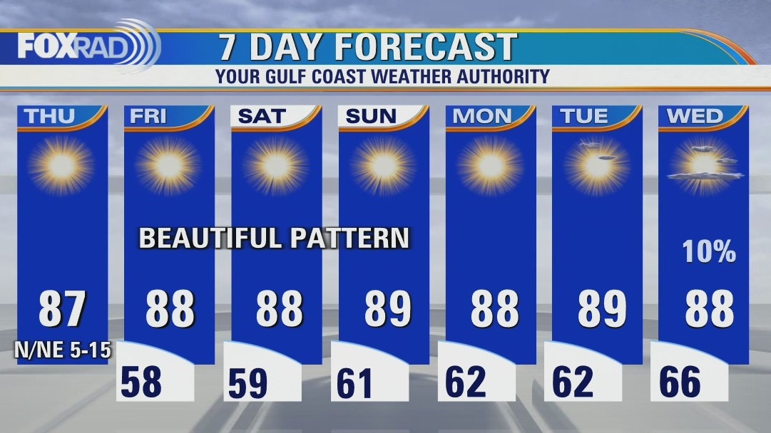 We will continue to enjoy an outstanding fall weather pattern through the weekend and beyond. Look for some semi-chilly overnights with lows in the 50s and sunny days with very low humidity. As Florida begins the recovery from Hurricane Ian, the storm will make its way toward South Carolina as either a strong tropical storm or a possible hurricane.