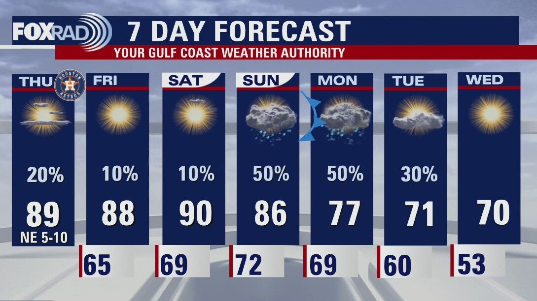 A weak front brought through isolated pockets of heavy rain this morning and will provide a slight decrease in temperatures and humidity. It looks to linger near the coast, which in conjunction with the sea breeze could spark up a few more isolated storms later this afternoon and evening mostly south of I-10. We'll be mainly dry to start the weekend with building humidity ahead of our second front, which brings much more promising rain chances at the start of next week. Plan for scattered showers and storms to return Sunday, and linger through most of the day Monday. After a soggy start to the work week, very pleasant crisp fall air drains in by midweek.