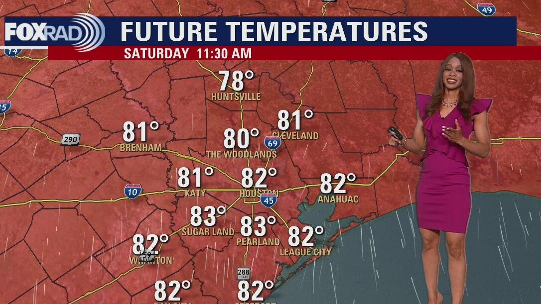 Few changes are in store for Houston weather over the weekend and next week. It will get even warmer with increasing humidity and wind. In fact, winds could gust to near 25 mph this weekend. There's a slim shot for a shower Sunday with better rain and storm chances with a cold front Monday and Tuesday. Also, the remnants of Roslyn early next week could contribute to more moisture over SE Texas and better rain chances.
