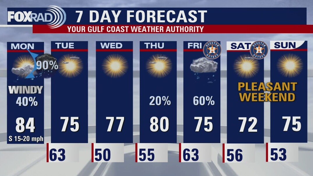 The world series is coming to Houston and so far, it looks rainy for game 1 and nice for game 2 - the roof will most likely be closed on Friday. In the short term, our main concern is an expected line of thunderstorms overnight tonight between around 10 p.m. and 4 a.m. Severe winds are possible along with brief heavy rain and lightning, but nice weather will follow for Tuesday and Wednesday