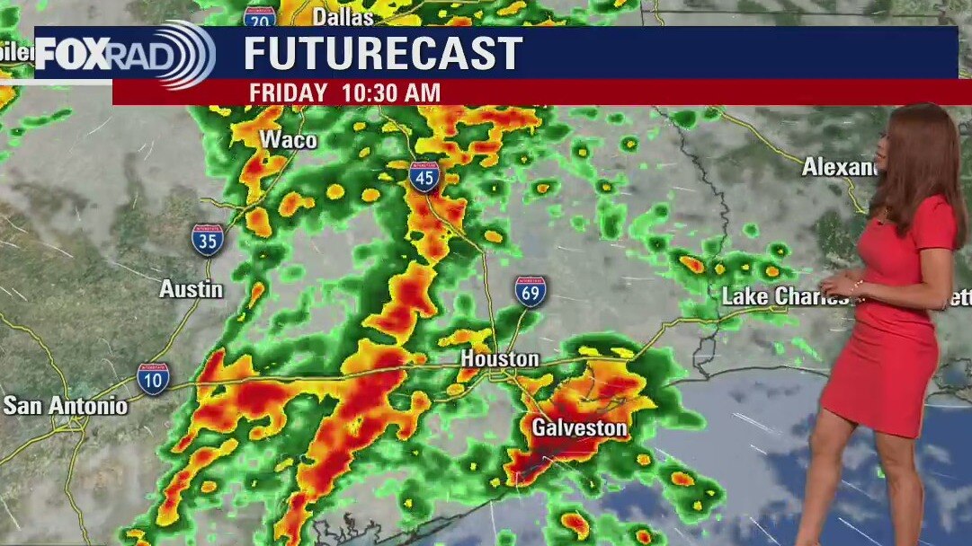 It looks like the weather will be quite messy for much of Friday leading up to World Series Game 1 with first pitch at 7:03 pm at Minute Maid Park. Rain will build in by early Friday AM with the heaviest rain expected from 10 AM until around 4 PM. This is the time a few storms could be severe with the biggest threat in our SW communities. An isolated tornado, hail, flooding and damaging wind gusts will all be possible so stay alert! Heavy rain should taper off close to First Pitch time but scattered showers will likely still be around. We should dry out and clear out over the weekend with pleasant and dry weather expected for Halloween. A few showers return to area by next Tuesday.