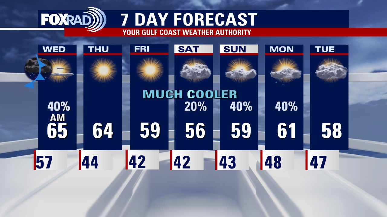 Tornado Watch remains in effect until 10 PM for Polk county. There's still a small risk for a brief tornado and a few damaging wind gusts through early tonight as a strong cold front moves in. The main event for the late night hours will be the potential for heavy rain that could lead to a few flooding issues. Cold front ushers in much cooler and breezy conditions for the rest of the week. We set another record high at Houston Hobby Airport today reaching 82 degrees. But the heatwave is coming to an end. Look for more rain possible over the weekend with cooler temperatures sticking around.