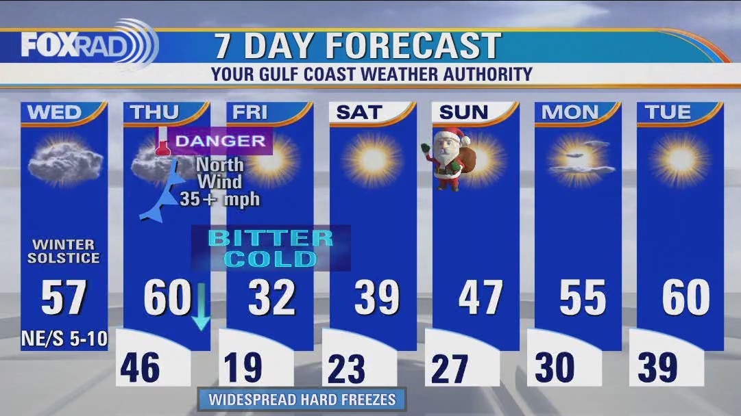 Take advantage of today's quiet weather to make your final preparations for tomorrow's arctic blast. Gas up the car, get those non-perishable foods, wrap pipes, cover plants, the whole shebang before dangerous cold plows in around midday tomorrow. Wind chills could get close to zero and this will be the coldest air since the Presidents Day freeze 2021. One bit of good news is that icy roads are much less likely this time except in areas where sprinklers or other pipes coat a street. Weather should be clear and cold for Christmas.