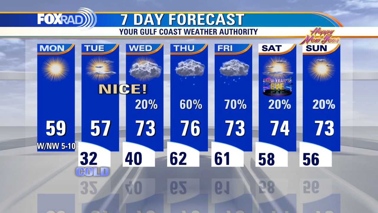 This morning marked the 4th freezing low temperature in a row, but a gradual warming trend is about to kick in. Today's high should reach the upper 50s followed by a similar day Tuesday - lows in the 30s and highs in the 50s. A south wind returns Wednesday bringing much milder air, more clouds, and a high chance for rain on Thursday. A mild pattern will be in place at to the end of 2022 and begin the new year.