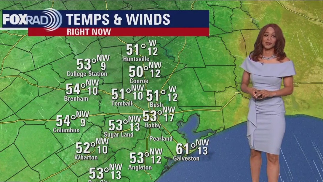 A strong cold front has pushed across SE Texas bringing with it a big drop in temperatures. Temperatures have dropped close to 30 degrees today and it gets even colder tonight with most areas dipping to the 40s. Another cold front is set to arrive Thursday night but should come through dry. Temps get up to near 70 ahead of that front Thursday before it turns colder heading into the weekend. Friday will be much cooler and breezy with wind gusts over 30 mph possible. Coldest temperatures are expected Saturday morning as we get close to freezing. We heat up again next week ahead of another storm system that will bring showers Monday and the chance for rain & a few storms that could impact date plans on Valentine's Day.