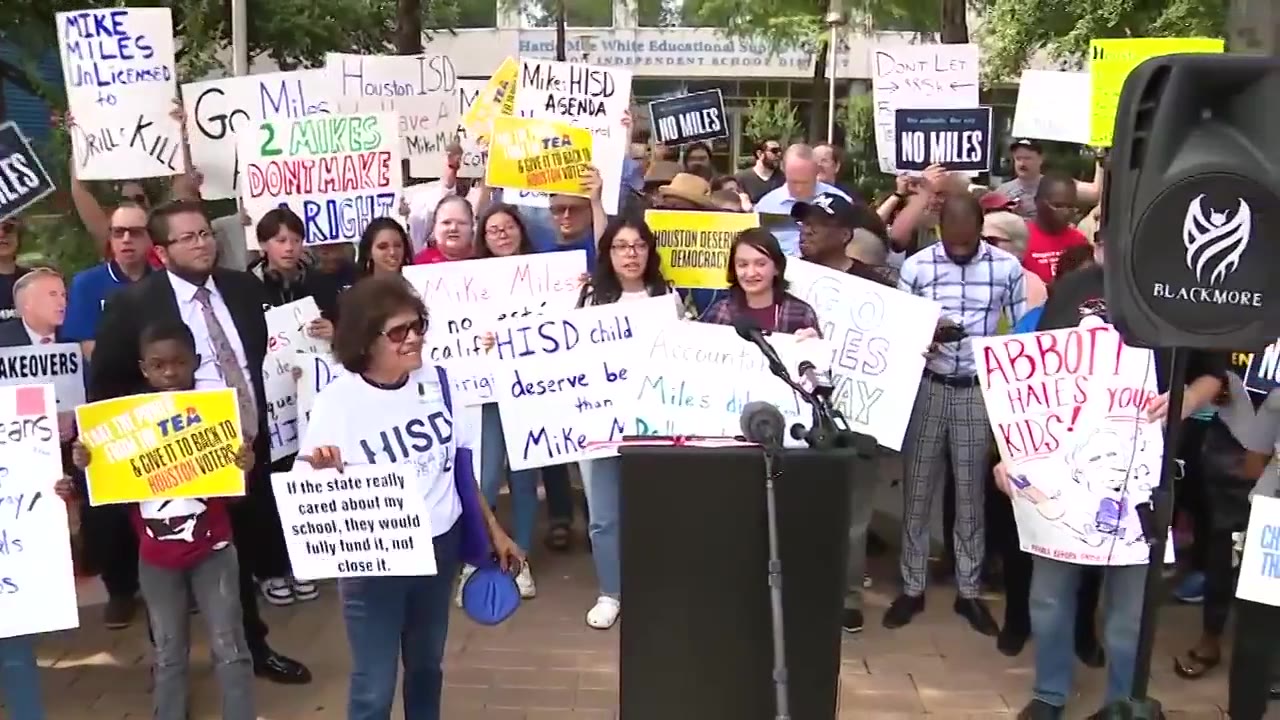 Students, teachers, and other Houston residents hold protest ahead of first HISD board meeting since new Board of mangers were appointed