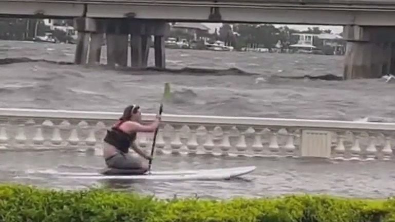 Some videos captured some residents in Tampa finding new ways to get around town in the high floodwaters.