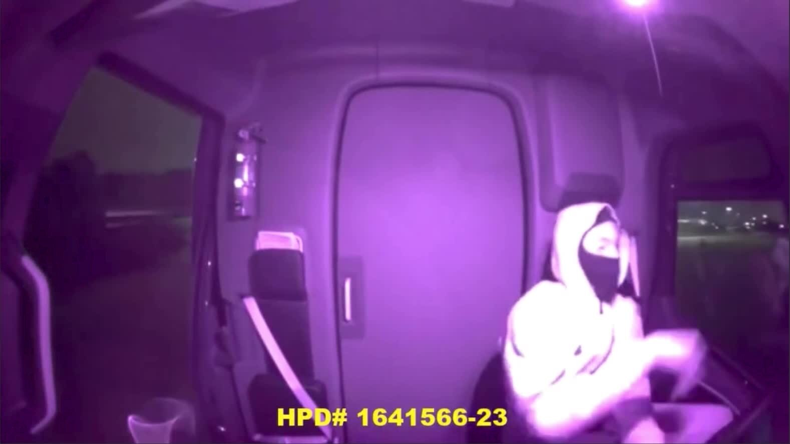 Houston police are asking for the public's help to identify a suspect who they say carjacked a delivery driver in the 4400 block of W. Airport on November 16, 2023. (Video: Houston Police Department)