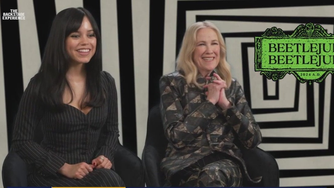 Jenna Ortega and Catherine O'Hara spoek with Backstage Experience's Dave Morales on their new remake of the 1988 classic Beetlejuice, 'Beetlejuice, Beetlejuice'.