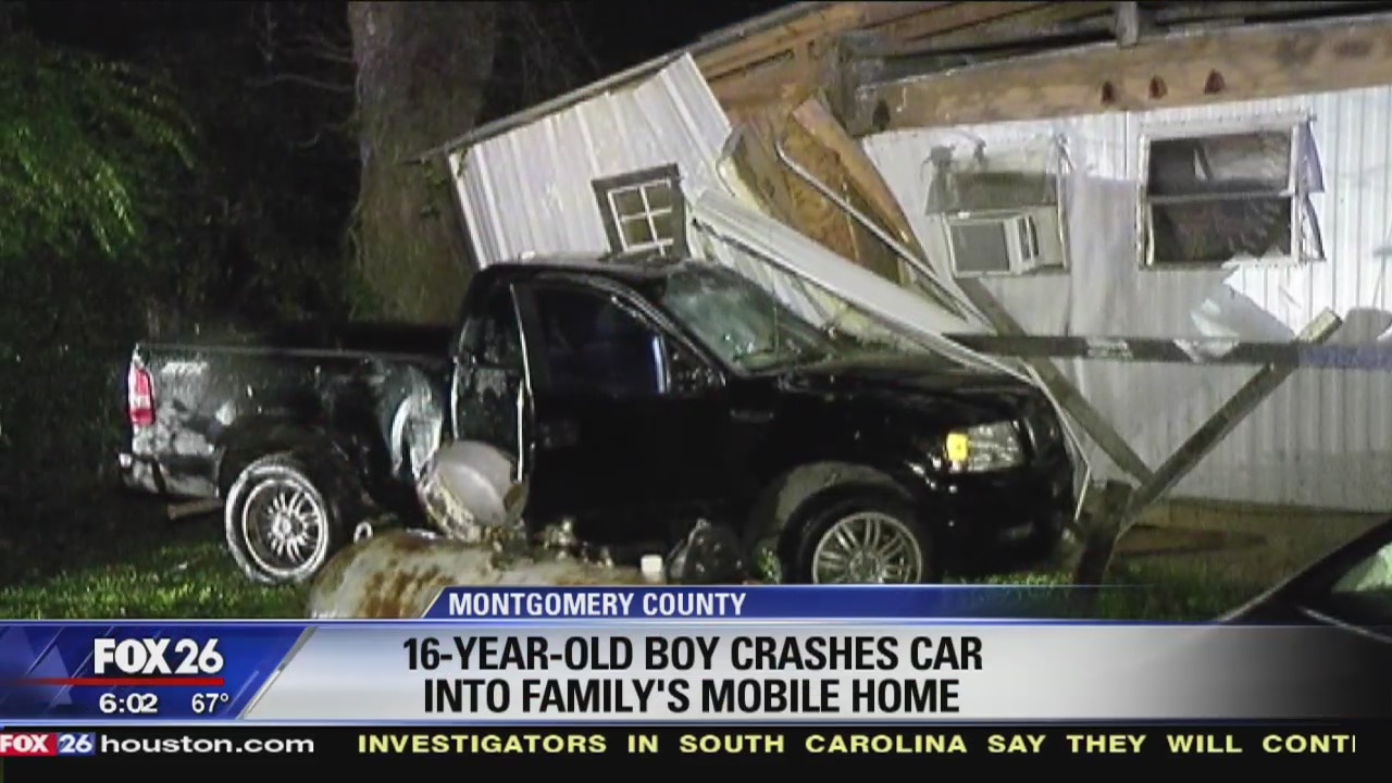 Boy crashes into mobile home