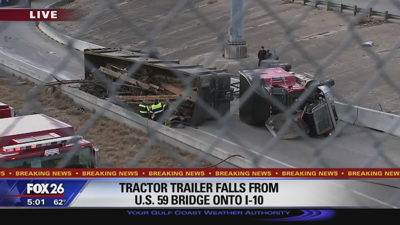 Overturned 18-wheeler on I-10 on-ramp in Houston