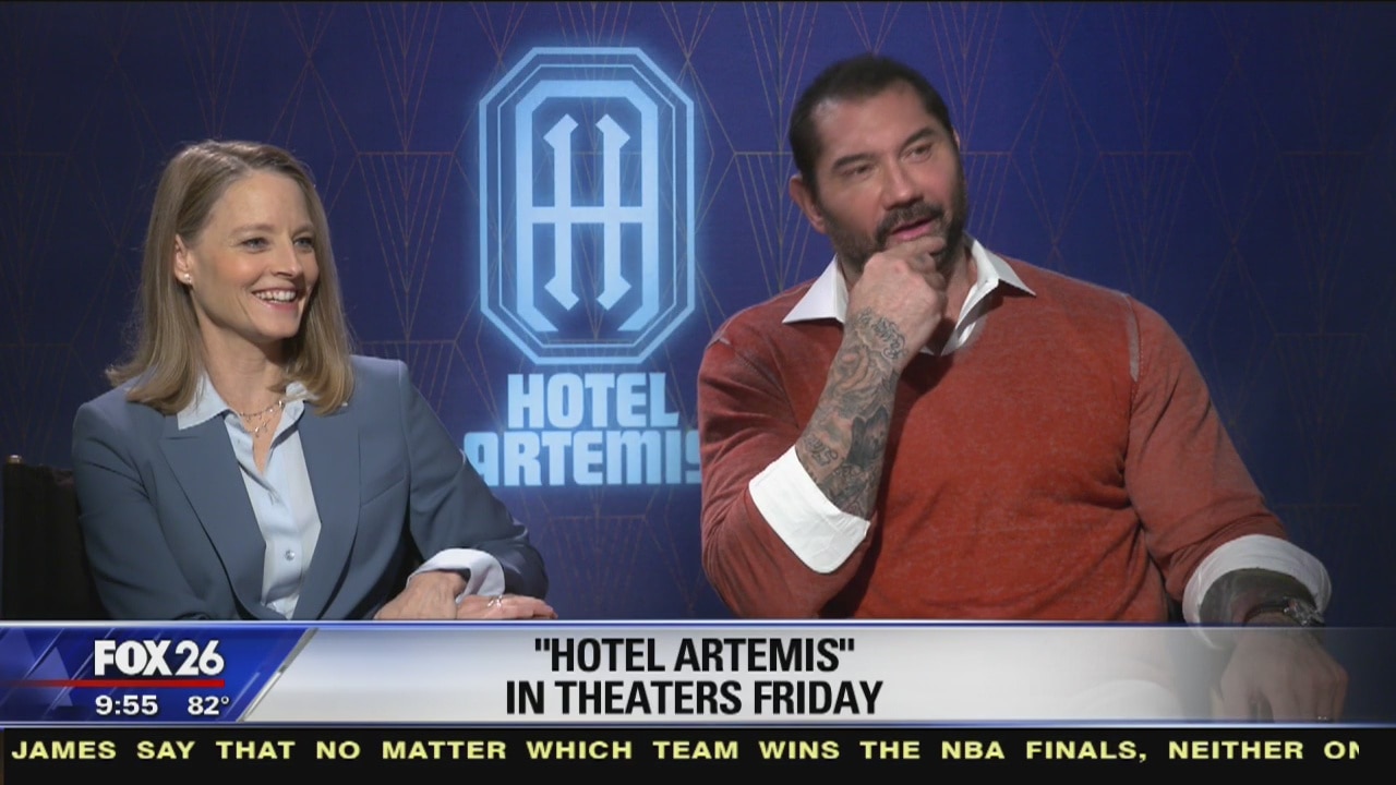BackstageOL.com's Dave Morales takes you backstage with 'Hotel Artemis' stars Jodie Foster and Dave Bautista on the FOX 26 Morning News.