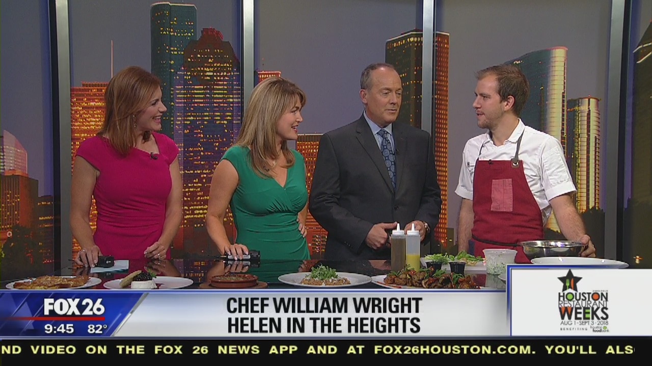 FOX 26 Morning News Extra anchors Sally MacDonald, Melissa Wilson and Tom Zizka interview chef William Wright.