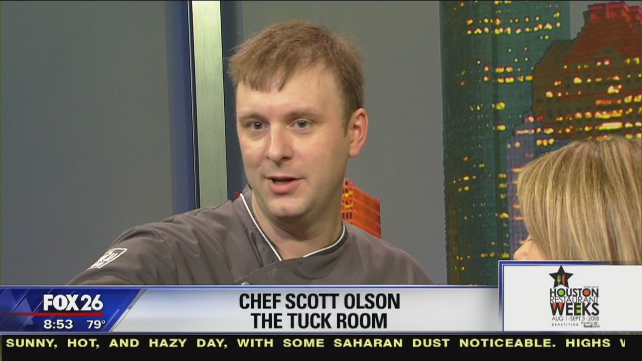 FOX 26 News anchors Melissa Wilson and Jose Grinan with chef Scott Olson from The Tuck Room