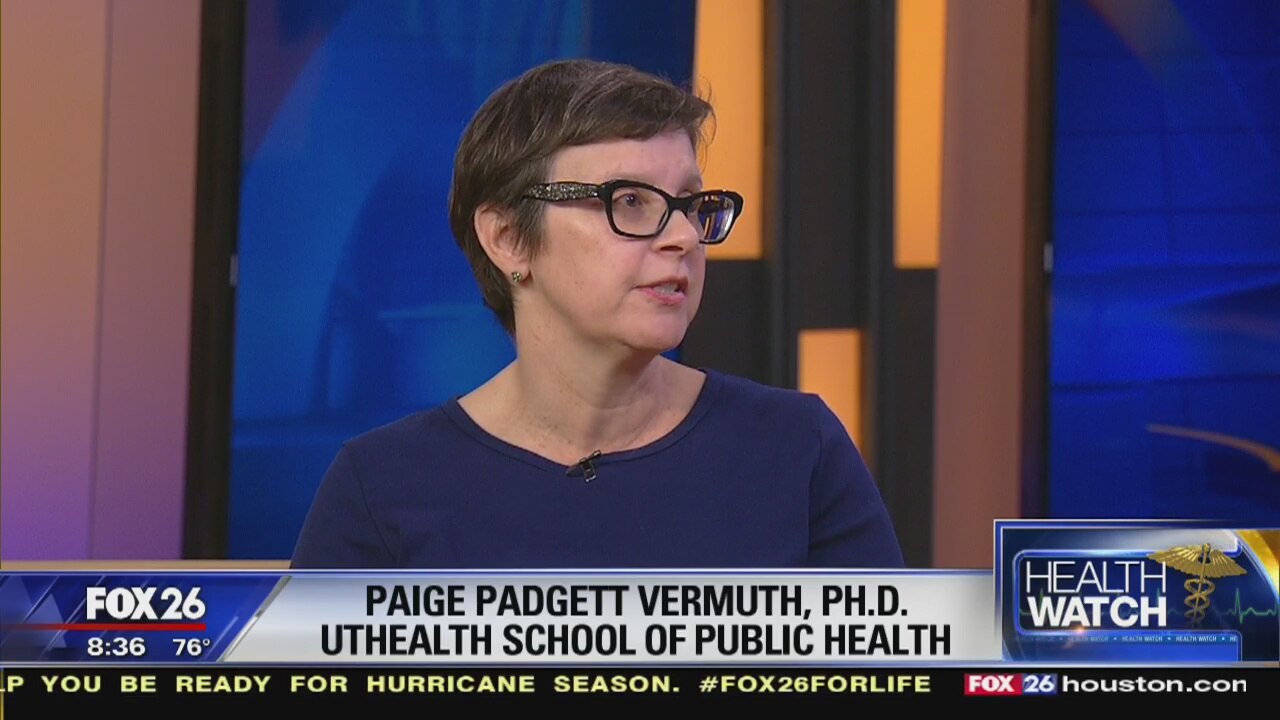 FOX 26 News anchor Melissa Wilson with Paige Padgett Vermuth, PhD from UTHealth School of Public Health