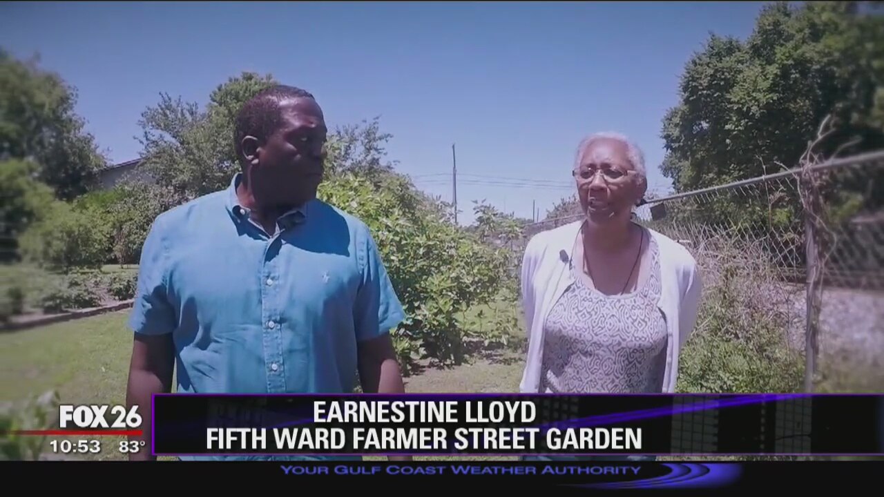 Isiah Carey interviews Fifth Ward Farmer Street Garden caretaker Earnestine Lloyd.
