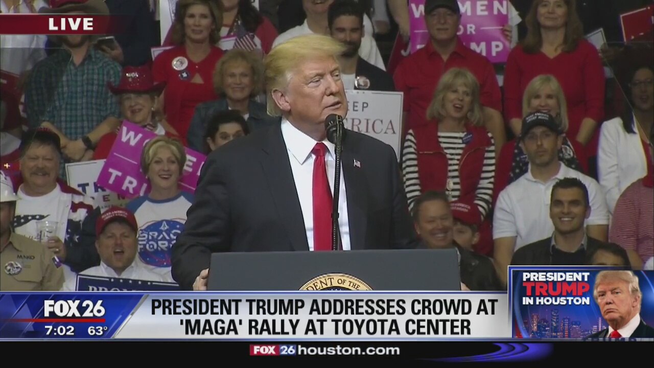 FOX 26 News coverage of President Donald Trump's "Make America Great Again" rally in Houston.