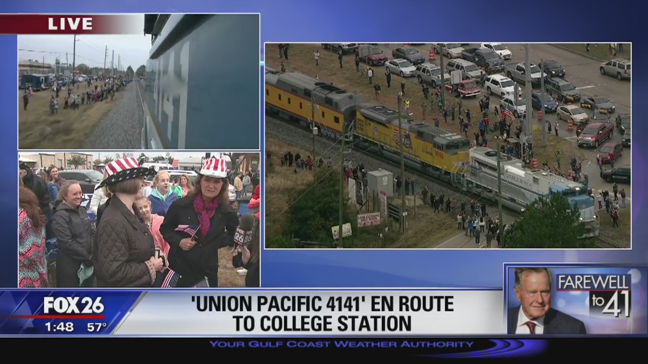 Mourners in Magnolia speak as they wait for Bush 41 train to pass