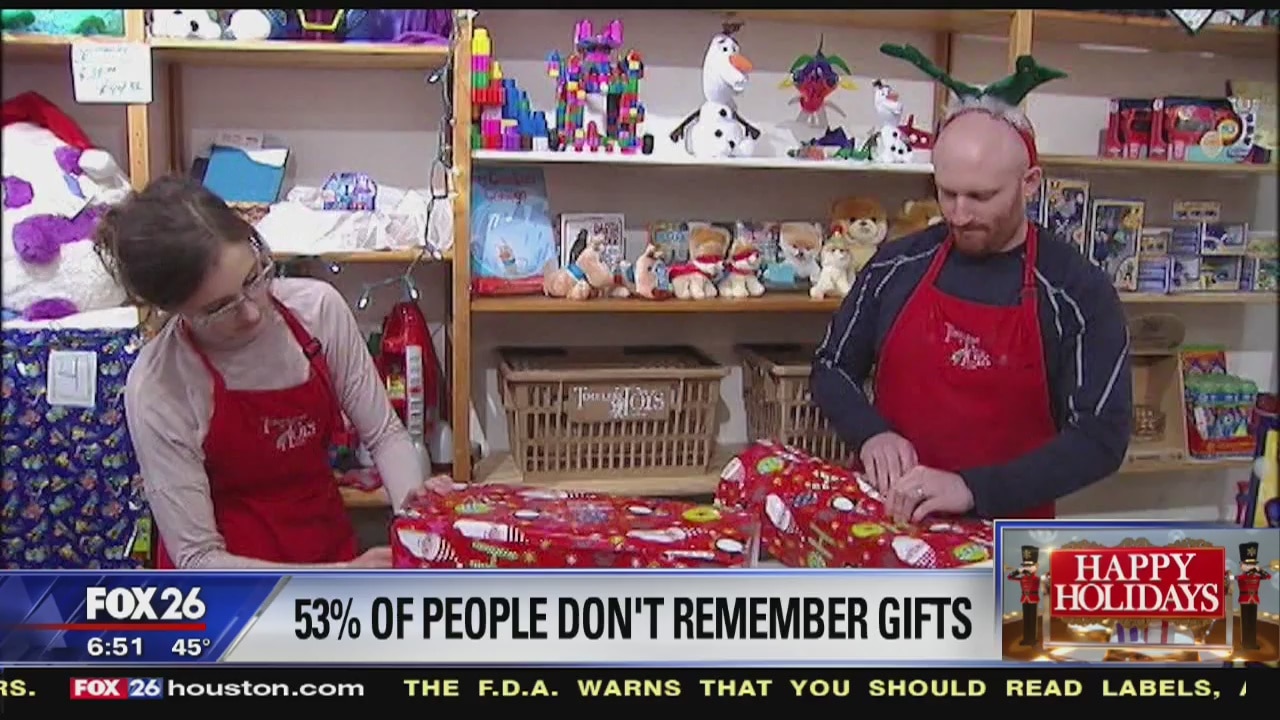 53% of people don't remember the Christmas gifts they received last year and 1/6 gifts won't be touched again after New Year's Day.