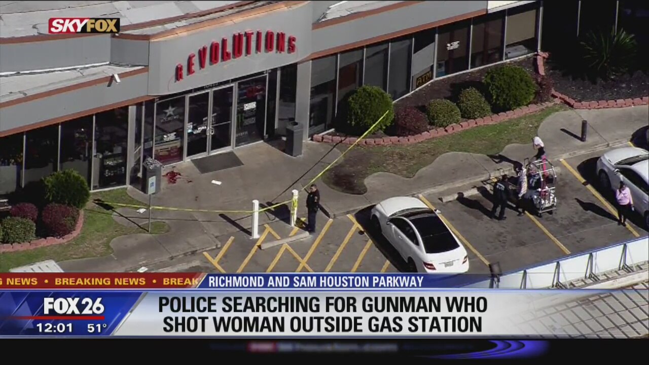 Police searching for gunman who shot woman outside gas station