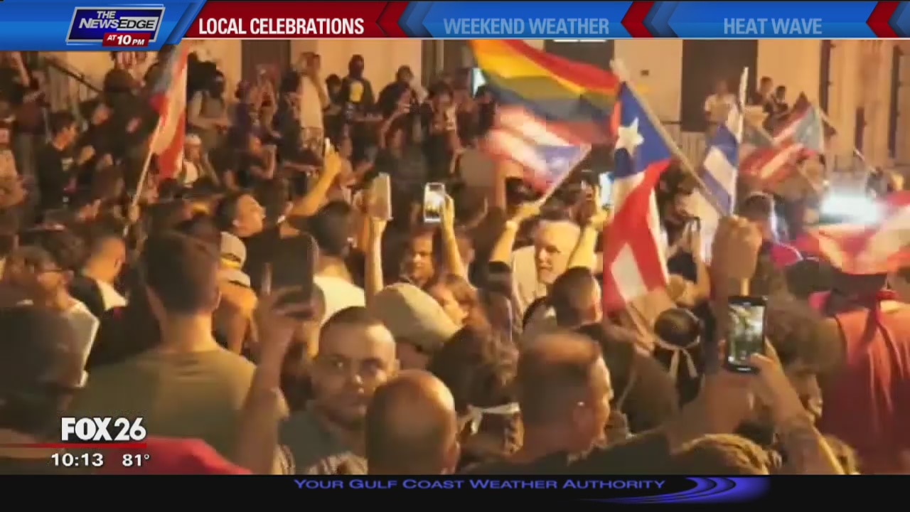 Local Puerto Ricans celebrate the success of protests