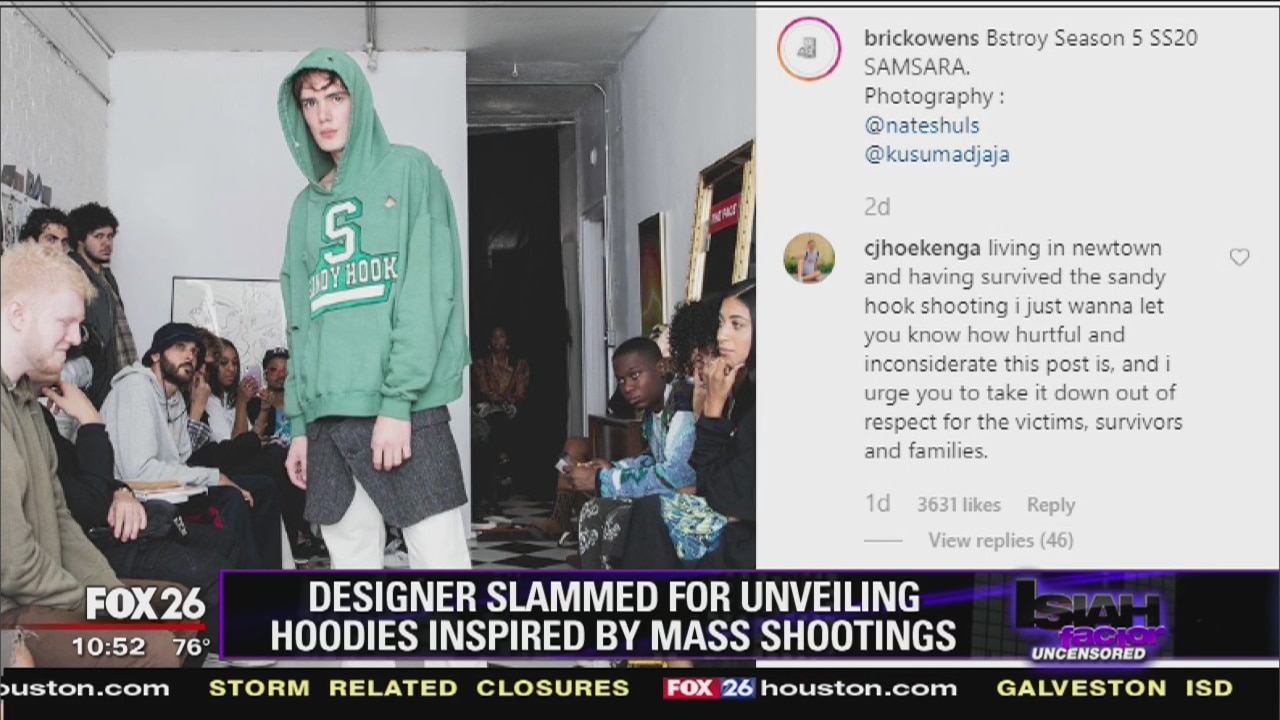 NYC brand sparks outrage at fashion week over mass shooting inspired hoodies