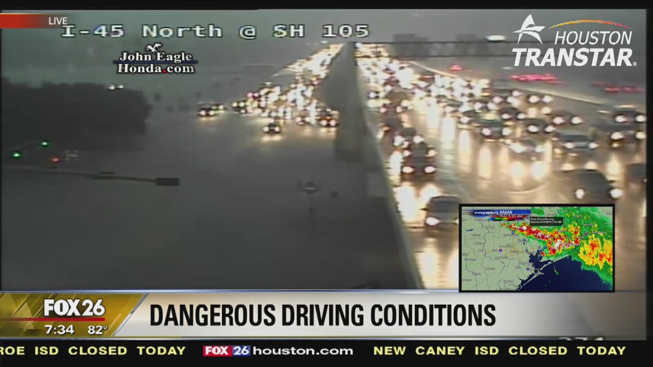Dangerous driving conditions Thursday morning as roads completely flood from heavy rain.