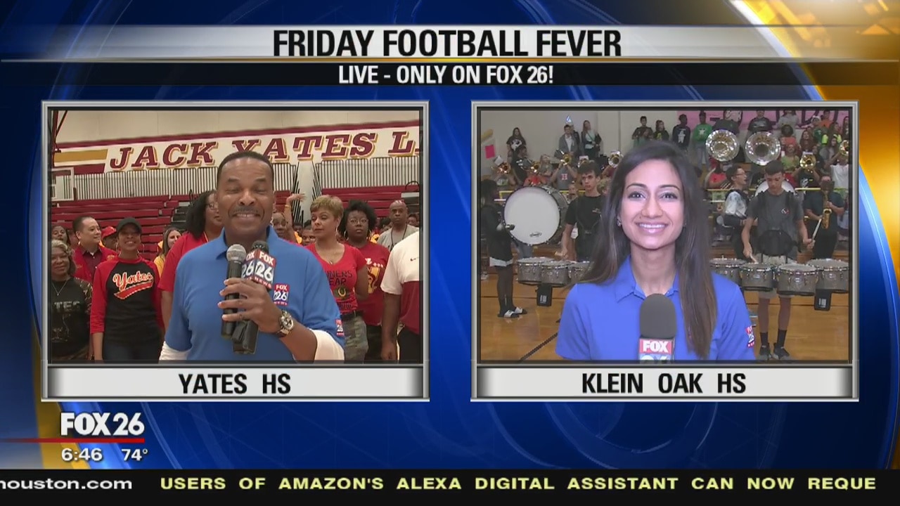 Morning pep rallies at Yates HS and at Klein Oak HS