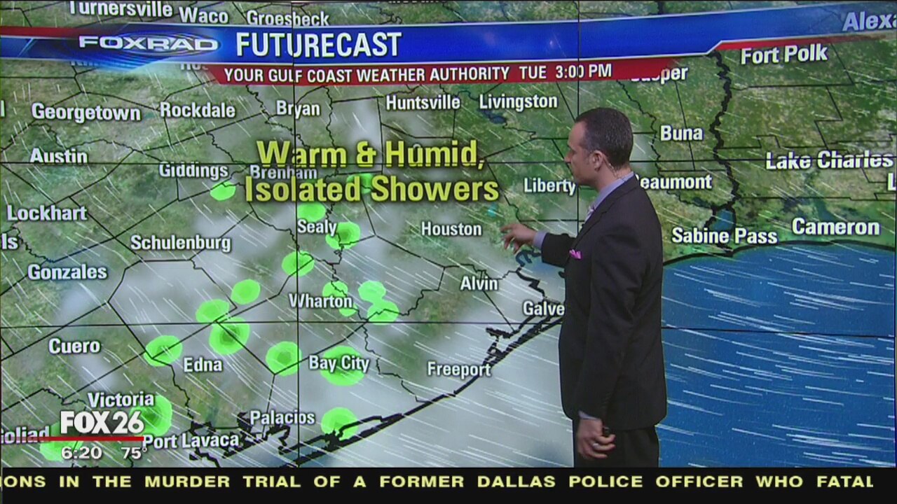 Mostly sunny, warm and humid with isolated showers possible. Highs in the low 90s.