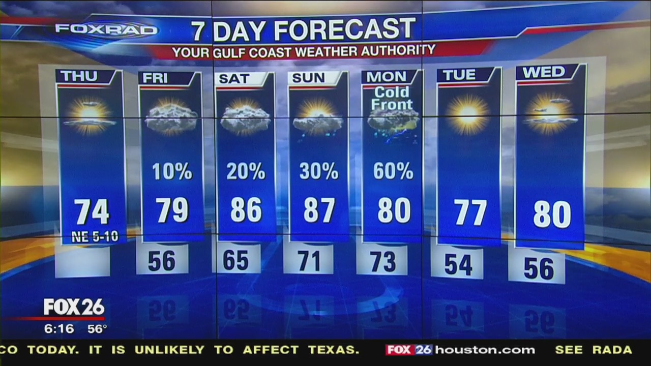 Cool this morning, then a mostly cloudy and seasonable afternoon with highs in the low to mid 70s. A tropical depression could form in the southern Gulf of Mexico today, but is unlikely to affect Texas.