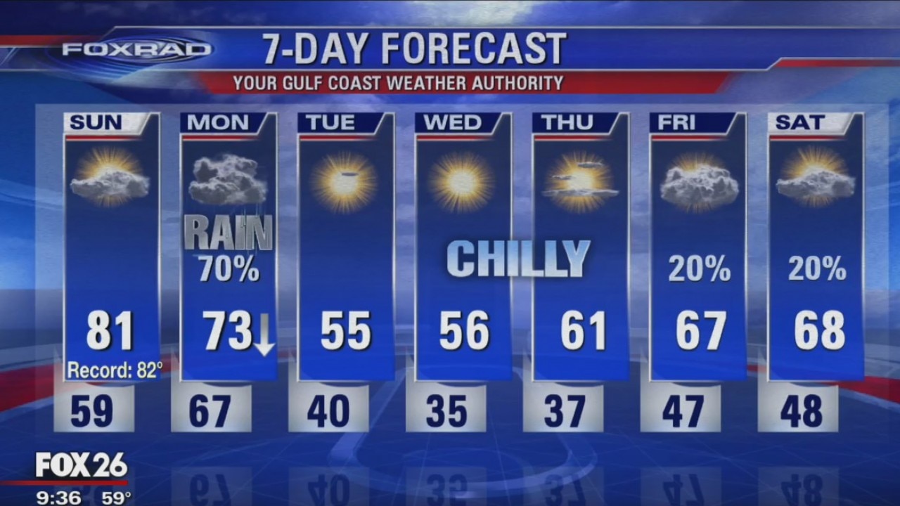 Enjoy the rest of the mild weekend. Cold front on Monday will make things feel more like December. Showers start Monday morning and the cooler air will arrive in the afternoon. There could be a few isolated thunderstorms as well.