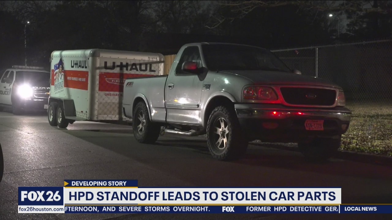 Houston police say the discovery of a U-Haul trailer filled with stolen vehicle parts led to a standoff and four arrests.