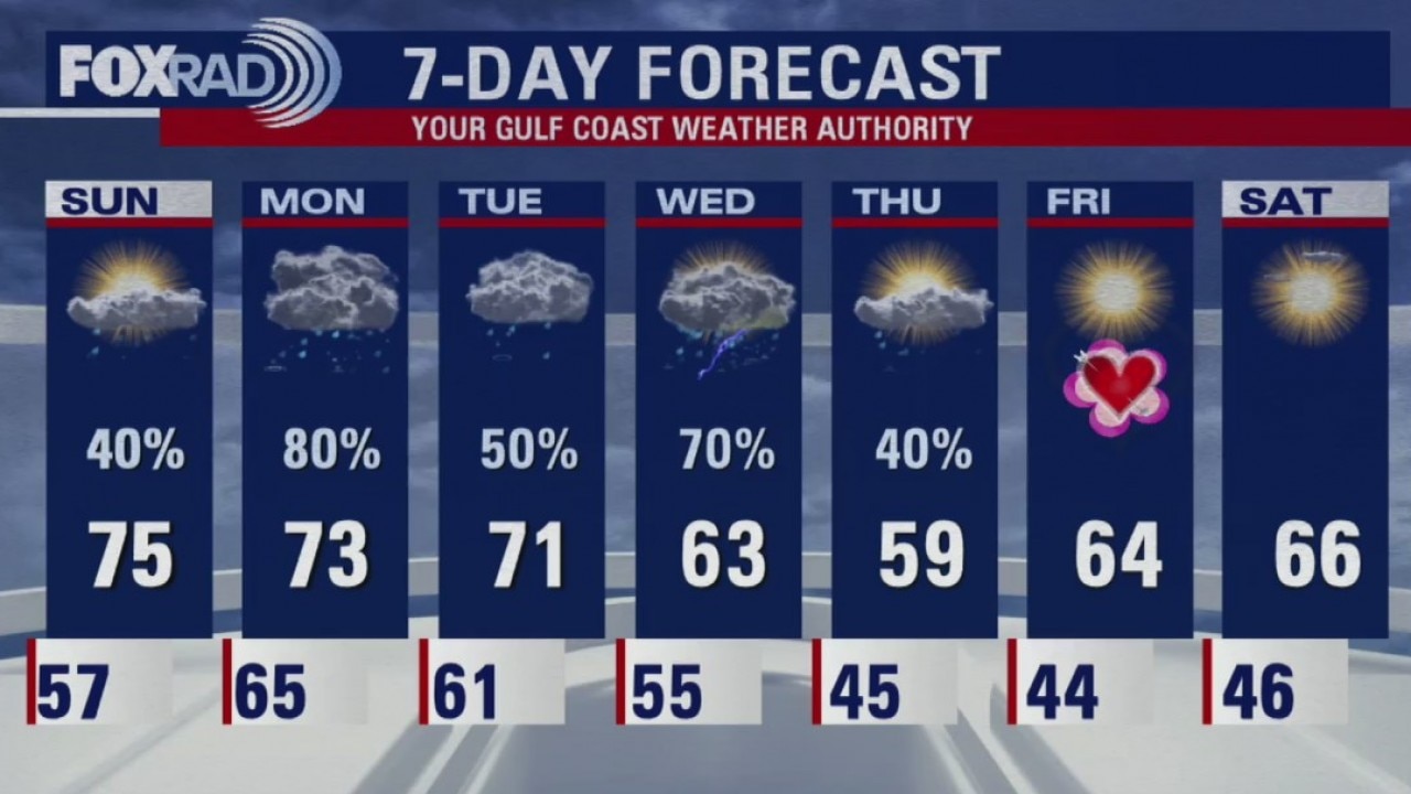 Next week is gearing up to be pretty rainy, with skies clearing a bit for Valentine's Day.