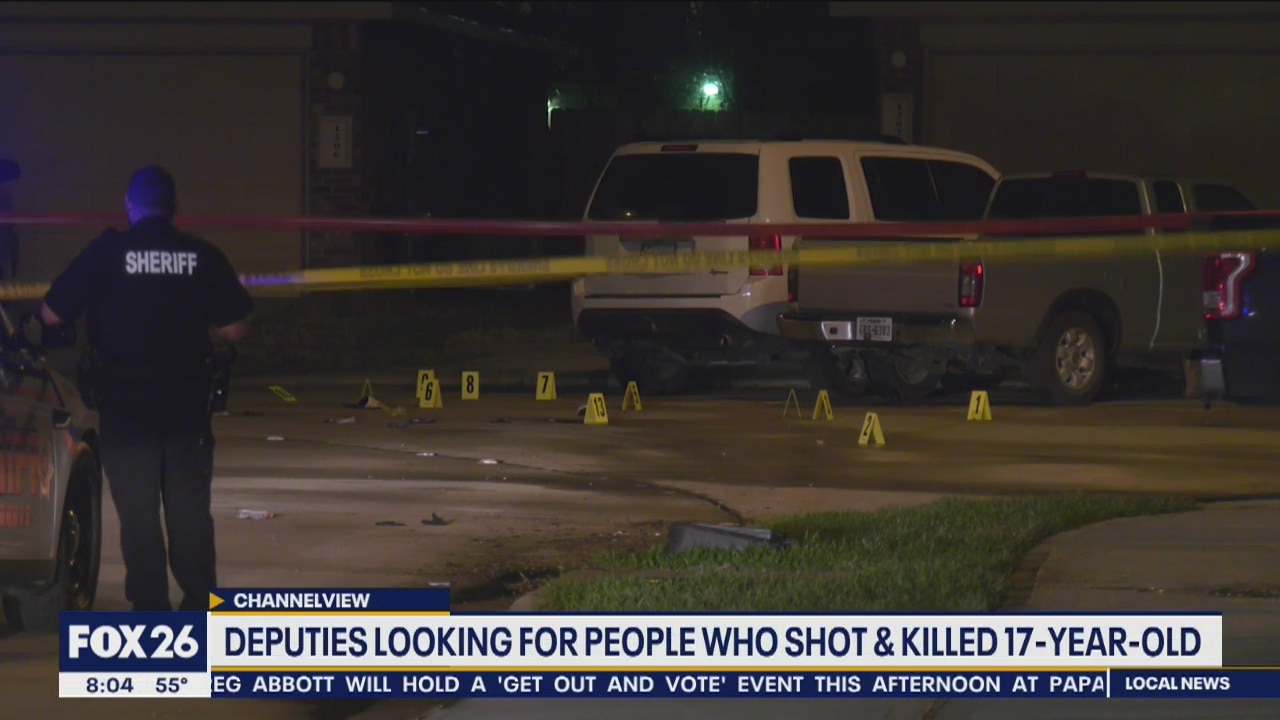 Harris County deputies are searching for the suspect or suspects who shot and killed at 17-year-old boy in Channelview.