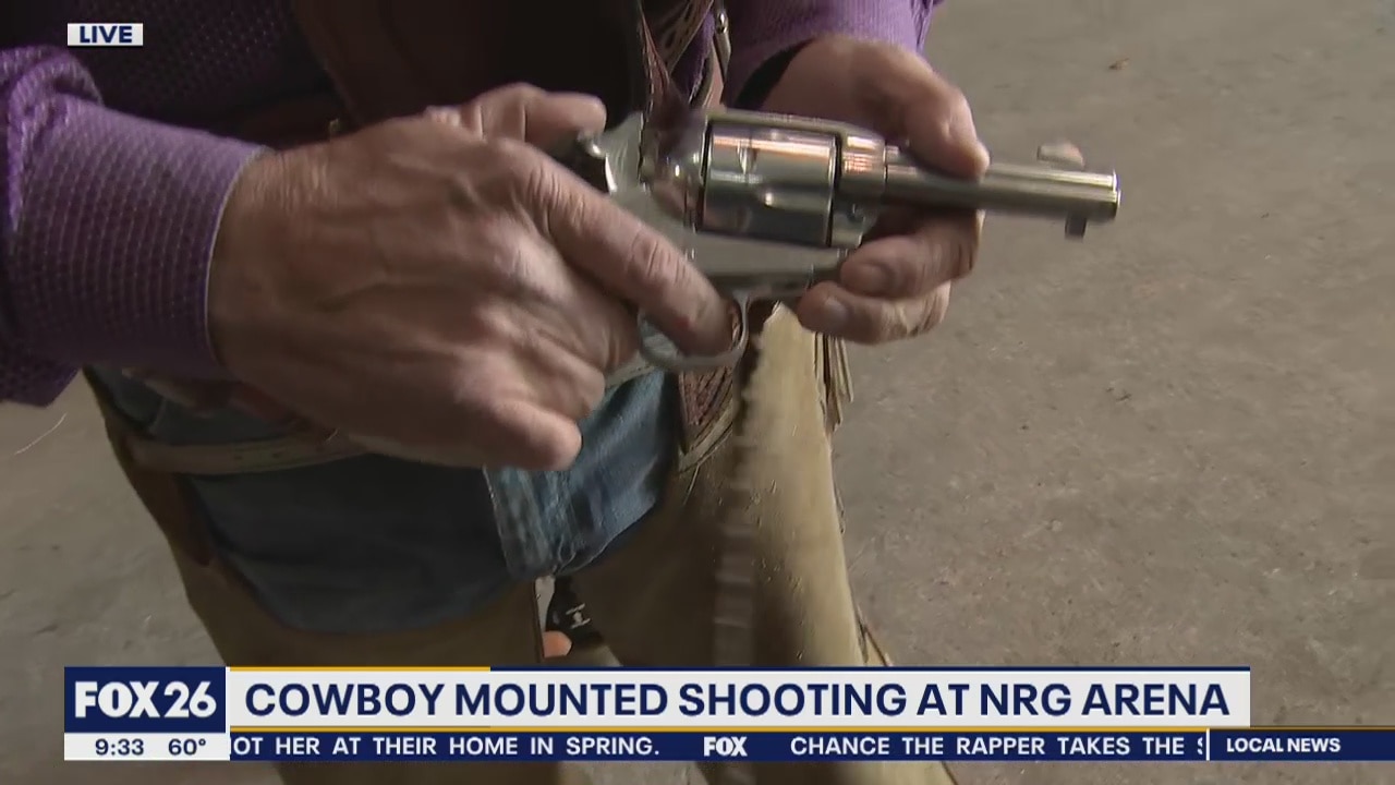 Cowboy mounted shooting at the Houston Livestock show and Rodeo