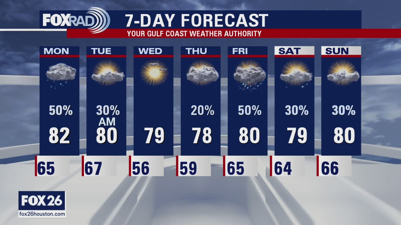 There should be drier air around southeast Texas and pleasant temperatures with 50s in the morning.