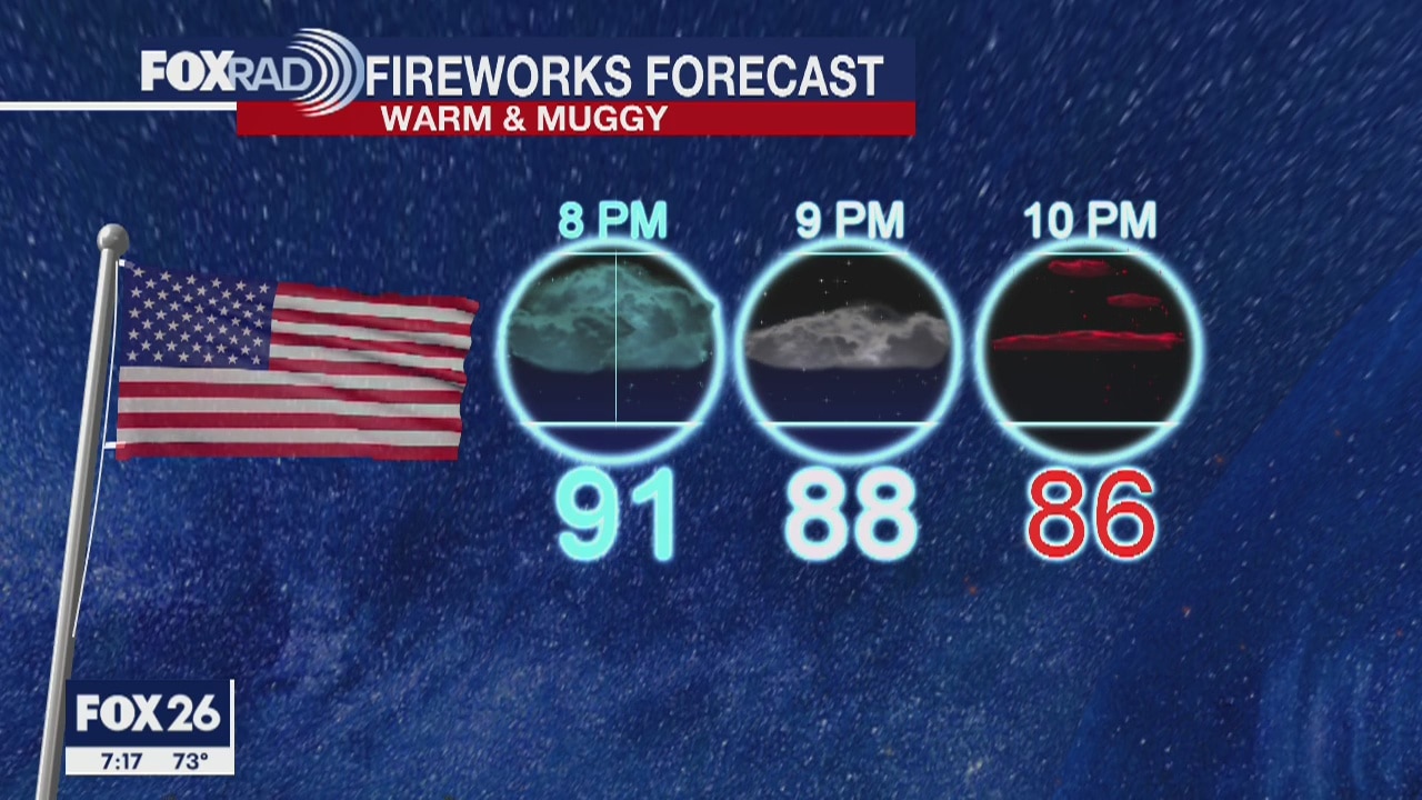 Happy Fourth of July! The forecast today will be remaining hot & humid with those afternoon 'feels-like' temperatures soaring into the triple-digits. While a stray shower can't be ruled out completely, nearly all of us will remain dry. Rain chances return next week, especially Monday and Tuesday, until more heat builds in late next week.