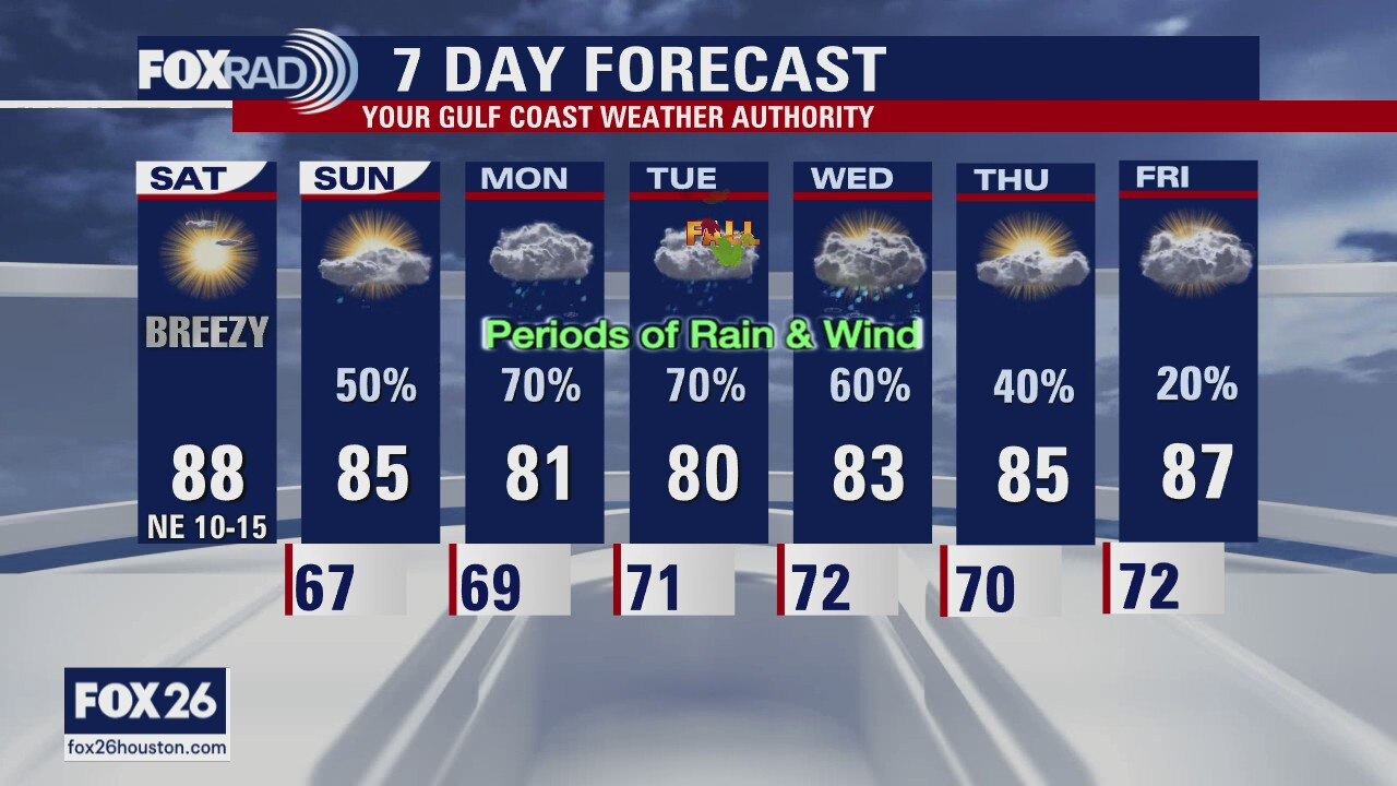 Saturday is going to be a spectacular day with mostly sunny skies and highs reaching the upper 80s, but don't get used to the nice forecast. Things will begin changing as we deal with some of the initial impacts of Tropical Storm Beta, beginning on Sunday. This will mainly be a coastal event so conditions should dramatically improve the farther inland you live. Look for waves of rain and wind to begin on Sunday and increasing as we head through at least Wednesday. Beta will initially slow as it makes a close encounter with the Texas coast and possibly move northeast and hug that coastline causing major beach erosion and coastal flooding Tuesday into Wednesday. This is a forecast to stay up to date on, so check back throughout the weekend.