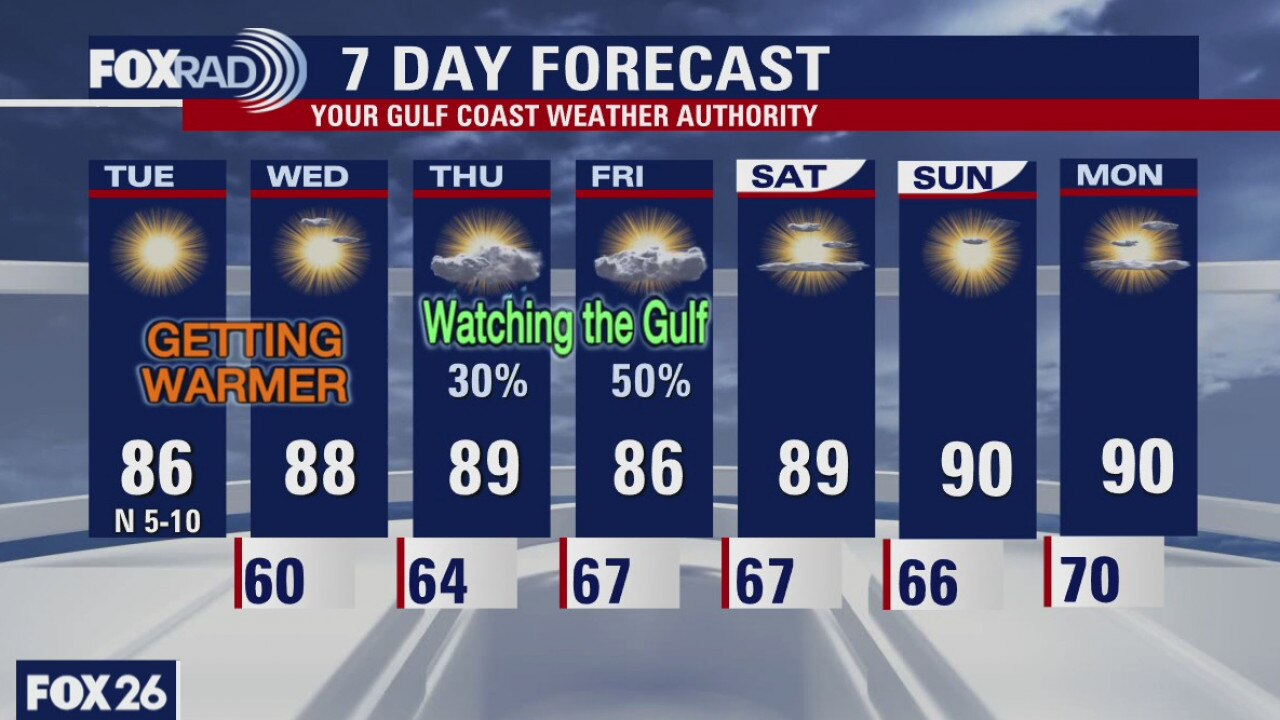 As we watch Hurricane Delta gain strength in the Caribbean, our weather looks great today and Wednesday with lots of sunshine and highs in the mid to upper 80s. By Thursday, a breeze should kick in as Delta gets closer to the Texas coast. On Friday, Delta is expected to pass to our east as a significant hurricane. Although we?ll most likely avoid a direct impact, some coastal flooding and large waves should be expected.