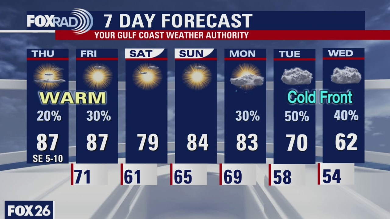 As expected, temperatures are warming nicely this afternoon. Many areas already in the low and mid 80s. We are on our way to another warm and muggy day with highs reaching the upper 80s. An isolated rain shower can't be ruled out, but tomorrow looks like we'll have a slightly better shot at seeing rain as a cold front is expected to impact the area. While that front will provide pleasant weather for the weekend, a stronger front will bring cooler weather next week with high rain chances as well.