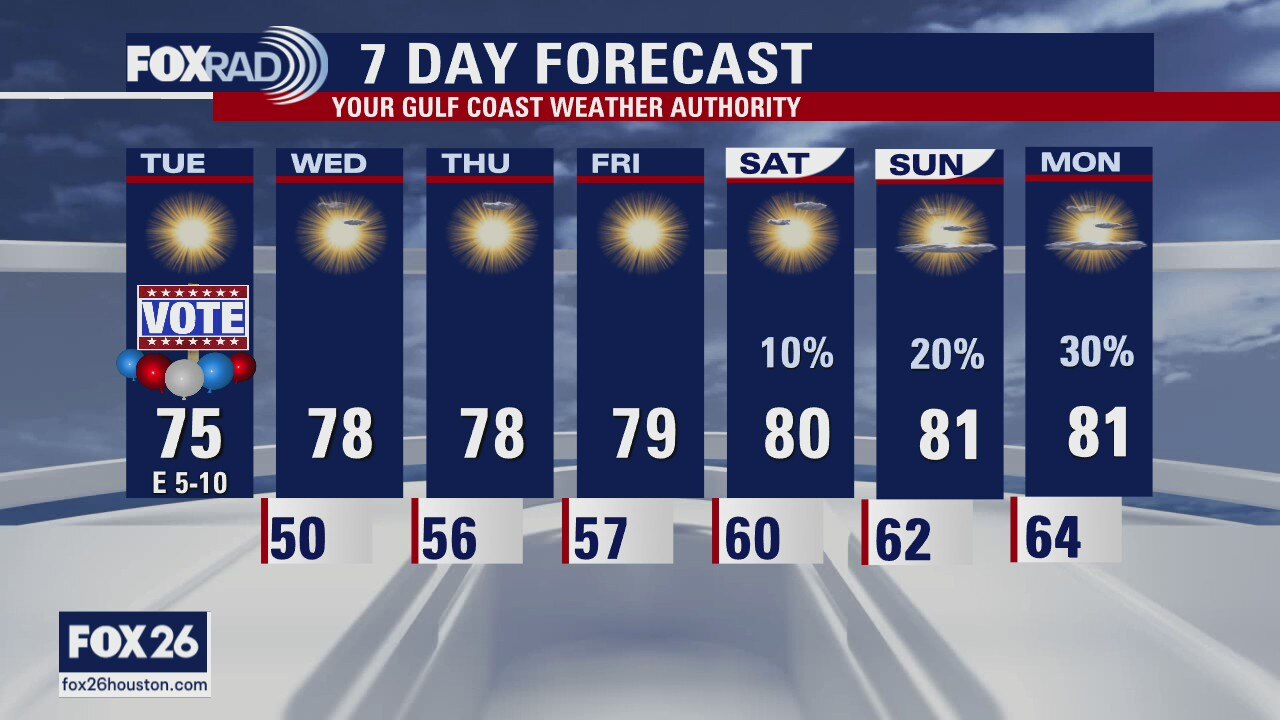 More sunny and dry weather lies ahead for today with slightly warmer air for the rest of the week. Look for low humidity today with highs in the mid 70s. Beginning Wednesday and continuing through the weekend, we?ll feel a gradual increase in humidity, but rain chances remain low.