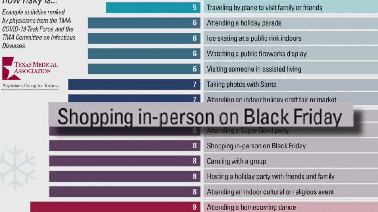 Texas Medical Association rates COVID-19 risk in holiday activities