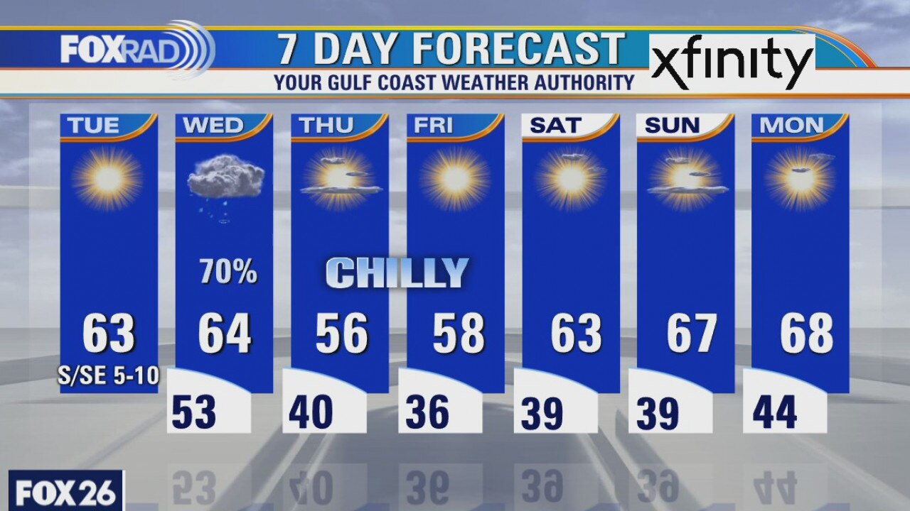 This morning's temperatures reached the lowest levels of this entire year so far, but changes are on the way. Look for a mostly sunny afternoon today with highs in the low 60s. Rain makes a return tonight and Wednesday with a quick-moving cold front, so watch for scattered storms and likely showers. Beyond that system, we'll enter a stretch of sunny and dry days with chilly overnight lows and pleasantly cool afternoons.