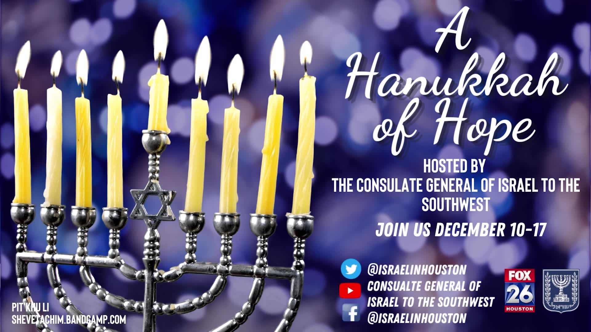 On this first and very special night of Hanukkah, we are thrilled to welcome distinguished leaders from the Southwest?s Jewish Community. Featured in this video is Consul General of Israel to the Southwest, Gilad Katz, Rabbi Rob Lennick the ExecutiveDirector of the Jewish Federation of New Mexico, Arnie Fielkow the CEO of the Jewish Federation of Greater New Orleans, Fred Zeidman of the Gordian Group, Rabbi AnnieBelford of Temple Sinai, Edie Roodman the Executive Director of the Oklahoma IsraelExchange, Kari Dunn Saratovsky the President & CEO of the Jewish Federation of Greater Houston, and Rabbi Brian Strauss of Congregation Beth Yeshurun.