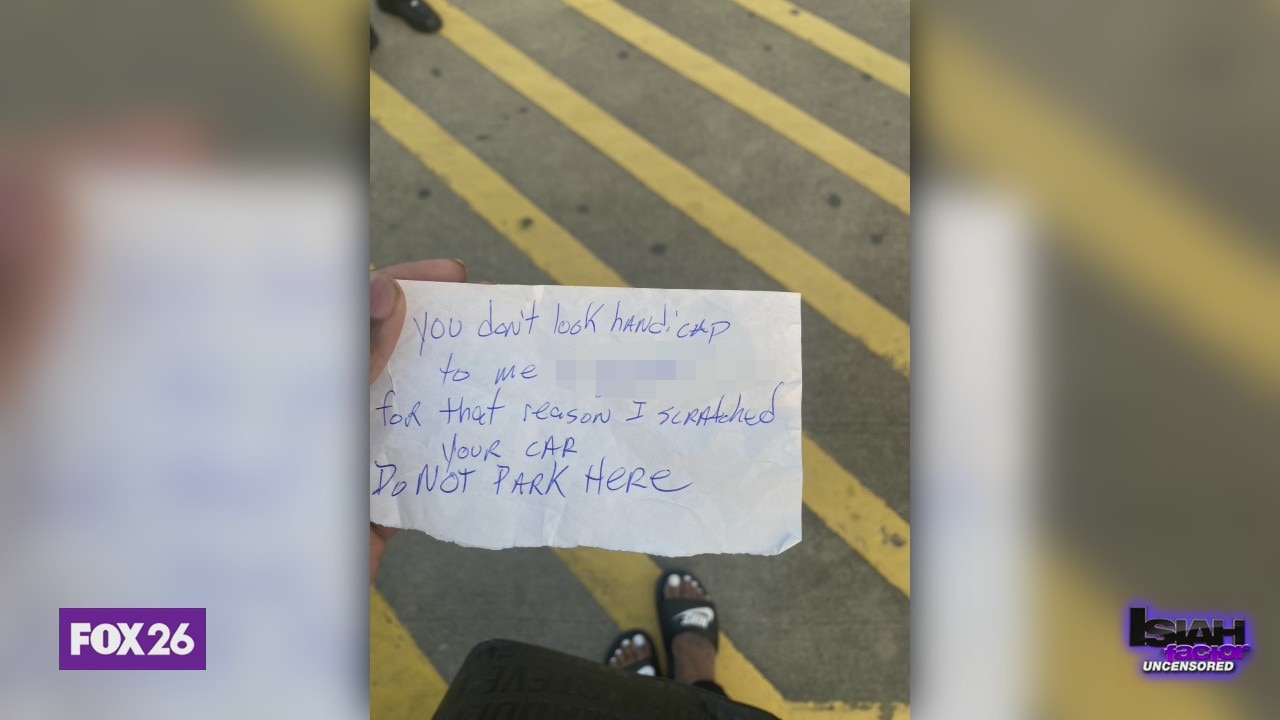 Woman parks in handicap parking, her car gets vandalized