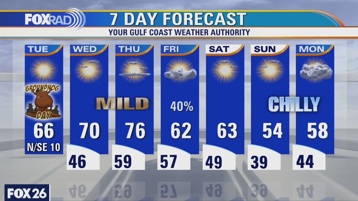 The adorable groundhog saw his shadow this morning and predicted six more weeks of winter. It does look like there is some very cold air coming into the central US over the next couple of weeks. We'll probably get a taste of it this weekend and parts of next week. In the mean time, today looks great, then tomorrow and Thursday are looking spring-like.