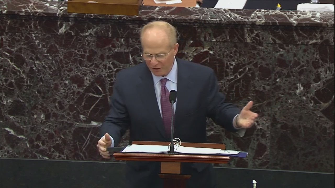 Video evidence presented by Former President Trump's lawyer David Schoen indicating a failure of fairness of due process in the House's desire to impeach President Trump, an "insatiable lust for impeachment".