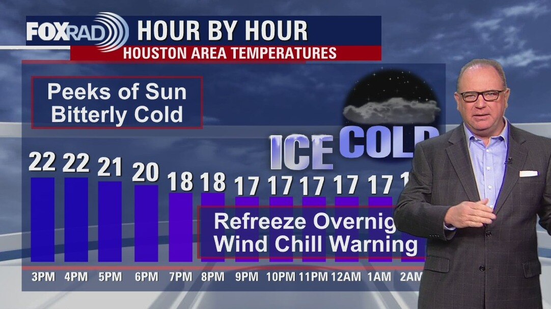 It's only going to get colder tonight as the skies clear and more cold air moves into SE Texas. The Houston area can expect single digit lows and even down into the teens along the coast. Stay safe and warm as best you can tonight.