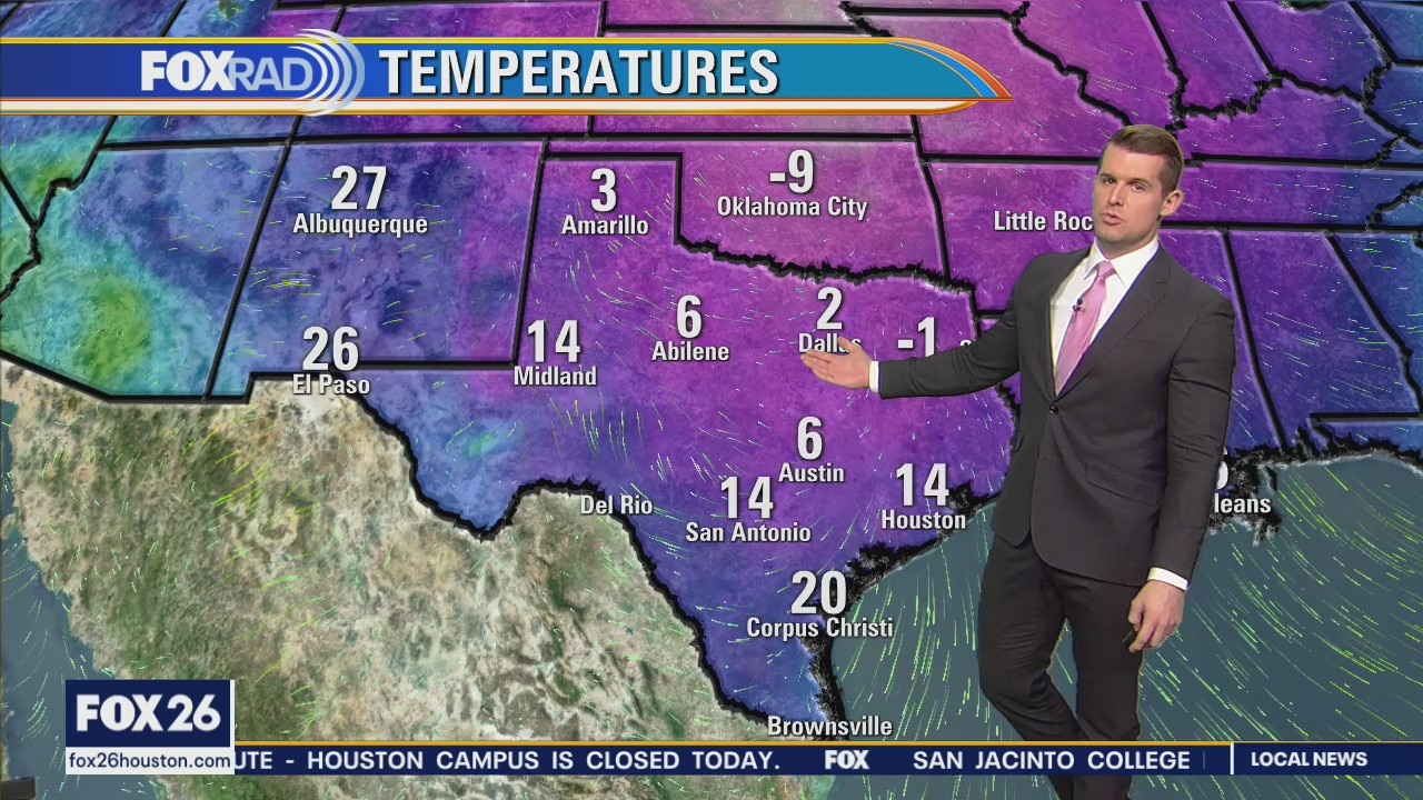 Very cold air remains in place this morning with single-digit temperature readings north of Houston and low teens elsewhere. A Wind Chill and Hard Freeze Warning remain in place until noon today as wind chills could remain in the single digits until the afternoon. Our attention then turns to another winter storm that could begin impacting the region as early as this evening.