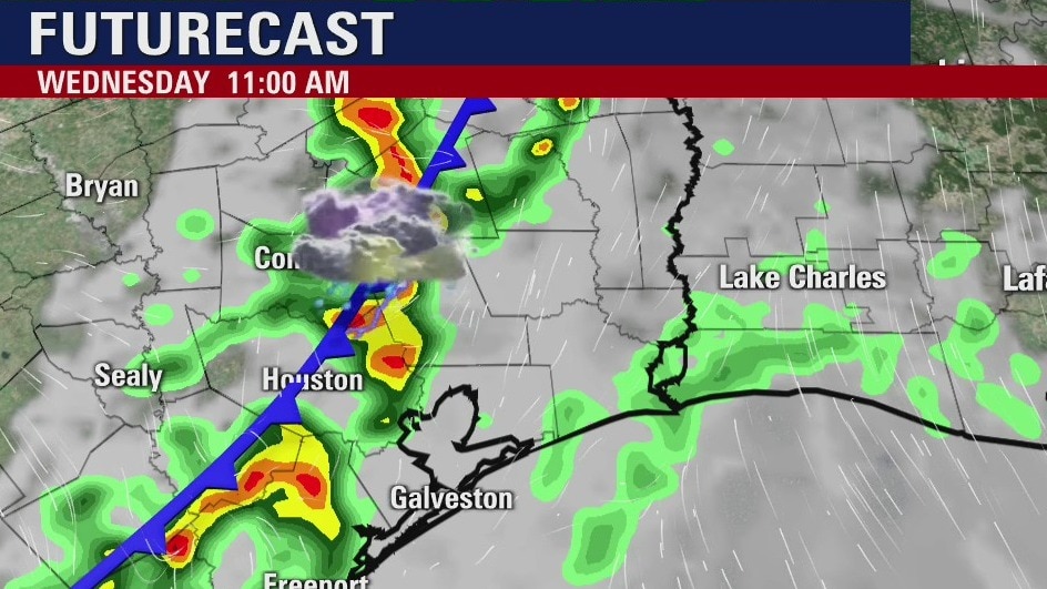 A quick moving cold front will swing through Southeast Texas early Wednesday morning. It is expected to move through the downtown Houston area between 10am - Noon. Expect some rain with the front and there is a chance that an isolated thunderstorm may become strong to severe. If strong storms form, the main hazard will be strong, gusty winds. The front should clear the coast by 3pm and it will be breezy and clearing skies the rest of the day. The rest of the week looks cooler with lots of sunshine.